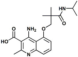 4-amino-5-(3-(isopropylamino)-2,2-dimethyl-3-oxopropoxy)-2-methylquinoline-3-carboxylic acid; 5-(2-(isopropylcarbamoyl)-2-methylpropoxy)-4-amino-2-methylquinoline-3-carboxylic acid |